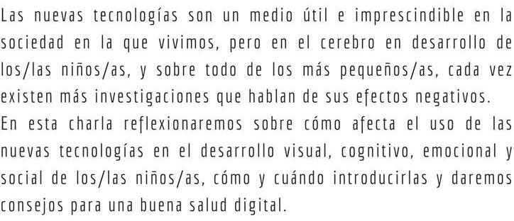 En esta charla conoceremos las características evolutivas de esta etapa tan intensa para así poder empatizar con lo que les está ocurriendo y poder acompañarles desde otro lugar más amoroso y respetuoso. Entenderemos que las famosas “rabietas” responden a una fase normal del desarrollo; veremos estrategias para prevenirlas y evitarlas en la medida de lo posible y aprenderemos a acompañar sus emociones cuando todavía no saben autorregularse.